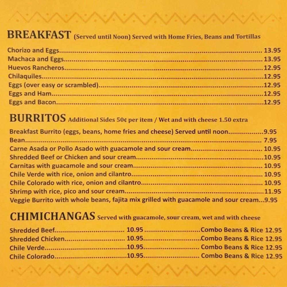 Lunch and dinner options shine with a variety of tacos, burritos, and enchiladas. Specialties like chimichangas and carne asada plates blend traditional recipes with fresh ingredients.